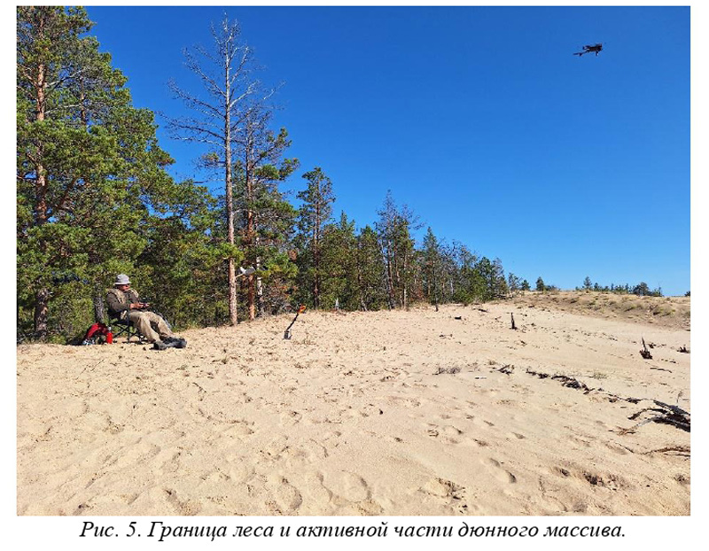 Введение. Песчаные массивы, формирующие пустынные ландшафты, широко распространены в криолитозоне Северного полушария. В Якутии подобные пустыни известны под названием тукуланы [Галанин и др., 2016], которые только в Центральной Якутии занимают площадь 2 660 км2 (незакрепленные дюнные массивы) [Куть и др., 2015]. Одной из особенностей Центральной и Северной Якутии является широкое распространение толщ песчаных наносов приуроченных к Приморской низменности морей Лаптевых и Восточно-Сибирского, долине Средней и Нижней Лены, бассейнам Вилюя, Оленька, Хатанги. Их мощность, на отдельных участках, немногим не достигает сотни метров, однако, проблема генезиса этих отложений до сих пор остается дискуссионной [Поморцев, Попов, 2017]. Цель настоящей работы — оценка движения ключевого участка Кысыл-Сырского тукулана с помощью многоспектральных снимков и материалов съемки с БПЛА на местности. Район исследования. Объектом изучения является Кысыл-Сырский тукулан (63°54' с.ш., 123°16' в.д.), расположенный на правом берегу р. Вилюй, в 20 км ниже от одноименного пгт. Кысыл-Сыр (рис. 1). Этот массив имеет площадь около 19 км2, изучался с 2012 по 2016 гг. полевыми отрядами ИМЗ СО РАН и является наиболее информативным. Особенности геоморфологии и стратиграфии Кысыл-Сырского массива рассмотрены ранее [Галанин и др., 2018; Галанин, Павлова, 2019]. Поверхность массива (тукулана) характеризуется ярко выраженным сложноорганизованным дюнным рельефом. Массив имеет компактные размеры 6 × 4 км и эллипсовидную форму, вытянутую в юго-западном направлении. Тукулан Кысыл-Сырский в плане имеет эллипсовидную форму. Его длина составляет около 6 км, а ширина — 3,5 км. В геоморфологическом отношении тукулан является дюной высшего порядка, образованной более мелкими комплексами дюн и междюнных понижений. В морфологическом отношении тукулан асимметричен. Северная и западная его части более высокие и имеют абсолютные отметки до 116 м, а южная и восточная части — 85-90 м [Павлова и др., 2015]. К бровке первой надпойменной террасы реки Вилюй примыкает цепочка дюн длиной примерно 3 километра и высотой до 15 метров. Наветренный склон этих дюн выпуклый, с уклоном 20-25 градусов. С подветренной стороны дюны имеют вогнутую форму (угол наклона составляет 32-35 градусов). Здесь часто возникают мощные восходящие турбулентные воздушные потоки, вызывающие образование оврагов, где эрозия обнажила почвенные слои разного возраста вместе с вертикально захороненными стволами деревьев. Основную поверхность тукулана слагают дюны параболического типа (встречаются также иногда продольные и поперечные), чередующиеся с котловинами выдувания и междюнными понижениями, занятые древесными куртинами (рис. 2). Форма дюн серповидная, длина их в пределах 100-150 м, средняя высота 3-6 м, а в юго-восточной части встречаются до 8-12 м. Они имеют наветренную пологую сторону крутизной 12-15° и подветренную — 33-35°. Поверхность дюн бугристая (за исключением наветренной части), осложнена кочками и куртинами, прослеживается рябь течений. Преобладают полынные и разнотравно-злаковые кочки округлой или эллипсовидной формы высотой от 10 до 60 см и диаметром от 5 до 45 см. Иногда встречаются куртины березы высотой до 3-4 м и диаметром 7-8 м [Павлова и др., 2015]. Некоторые междюнные понижения заняты древесными куртинами, представленные сосной обыкновенной с толокнян